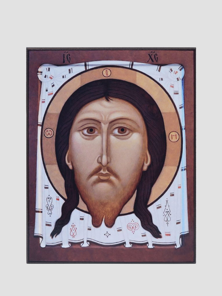 В центре композиции размещается Лик Спасителя с крестообразным нимбом, который находится на украшенном узорами плате. Также, в более поздних образцах в верхнем регистре появляются двое ангелов, поддерживающих плат с Ликом Господа. Иногда встречаются изводы с изображением царя Авгаря, держащего Нерукотворный Образ.